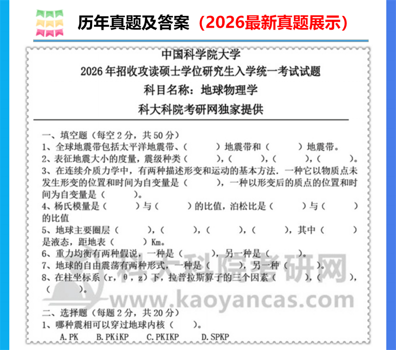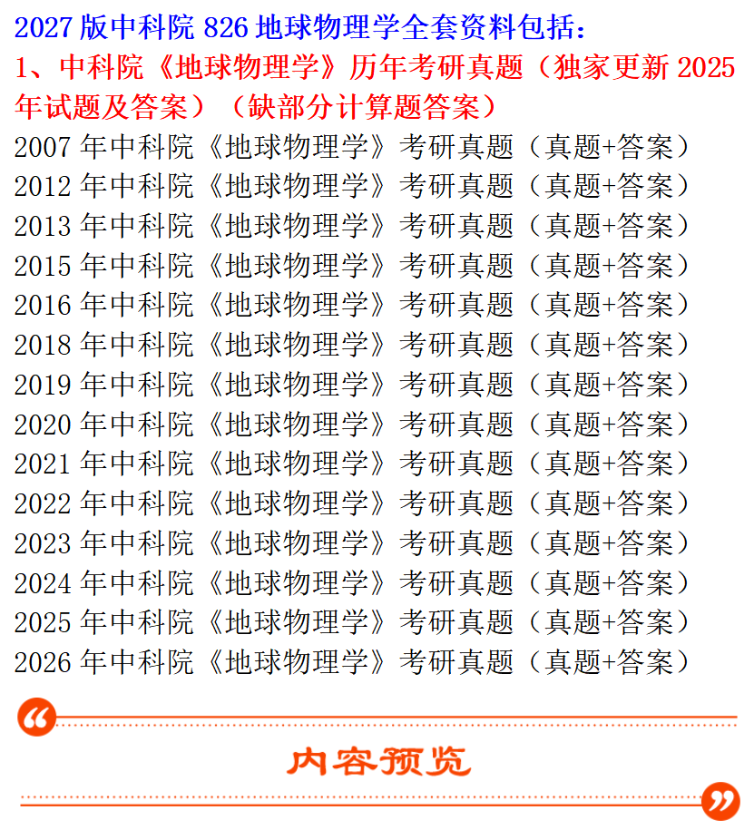 基础套餐包含:中科院2007、2012、2013、2015、2016、2018-2026年地球物理学考研真题及答案(缺部分计算题答案)