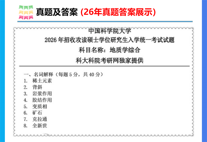 2027年中科院 国科大887地质学综合考研真题答案初试咨询辅导课程