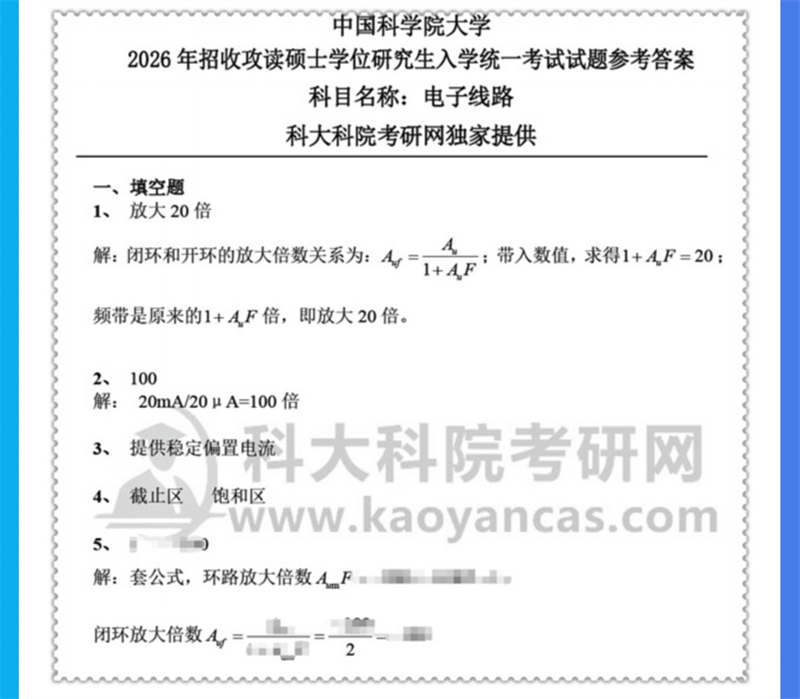 2027年中科院国科大856电子线路考研真题答案初试咨询辅导课程