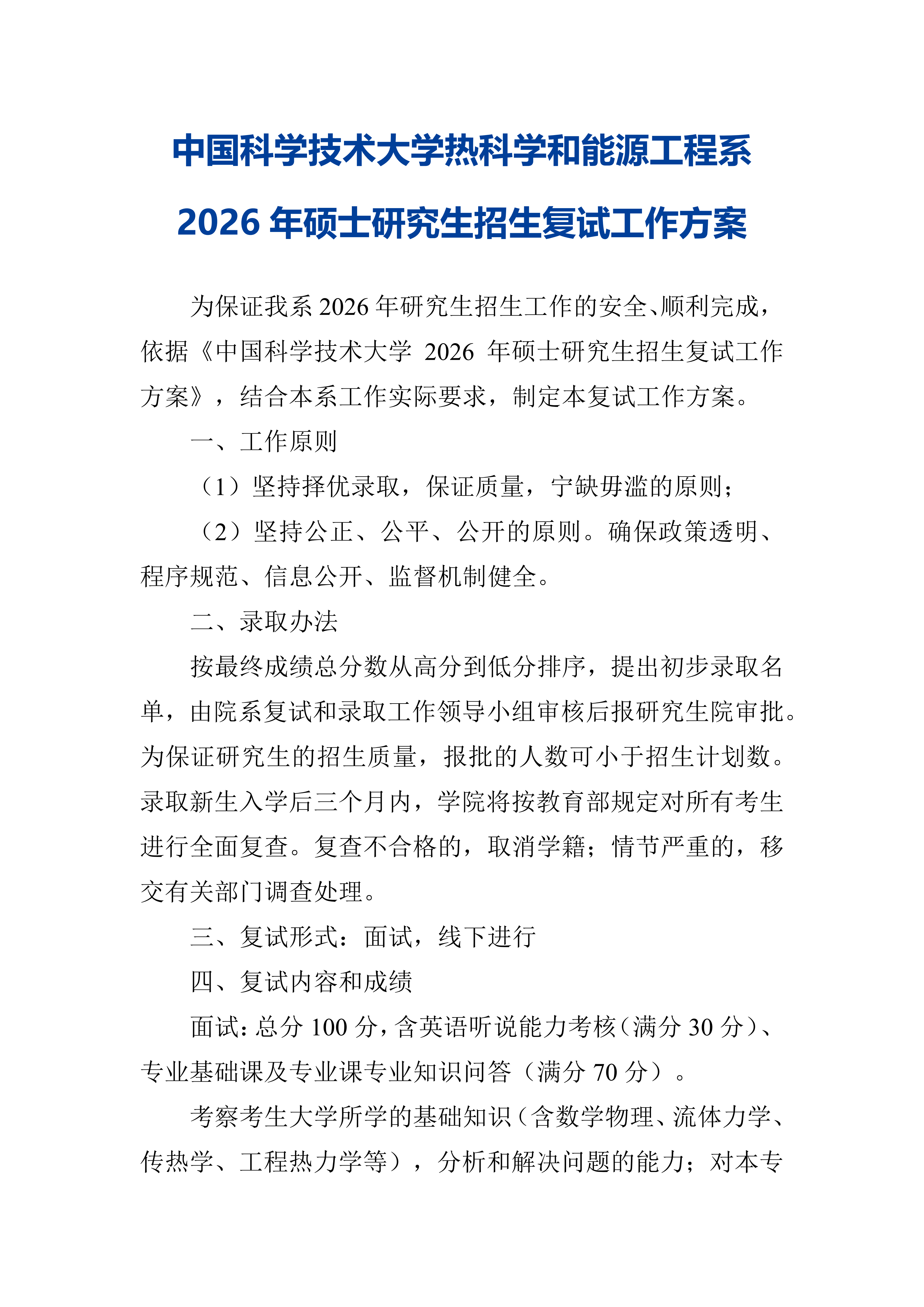 2026年中国科学技术大学中科大工程科学学院考研复试内容