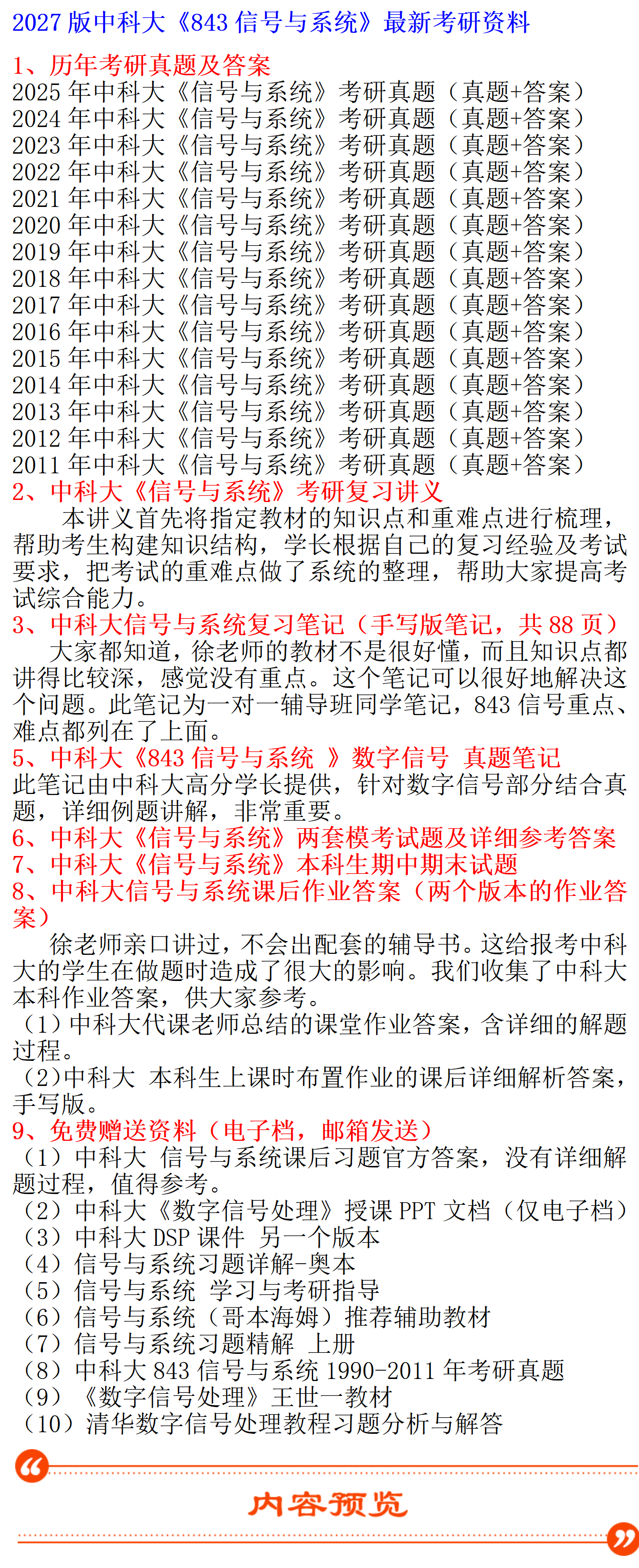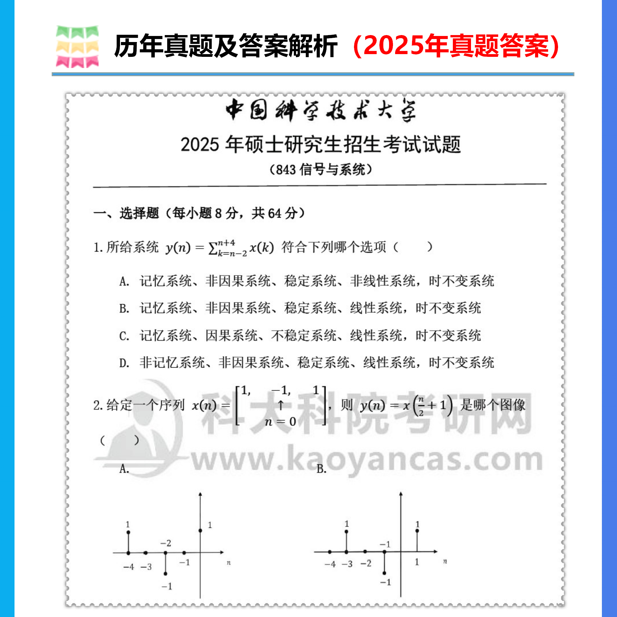 2027年中科大843信号与系统考研真题答案初试咨询辅导课程