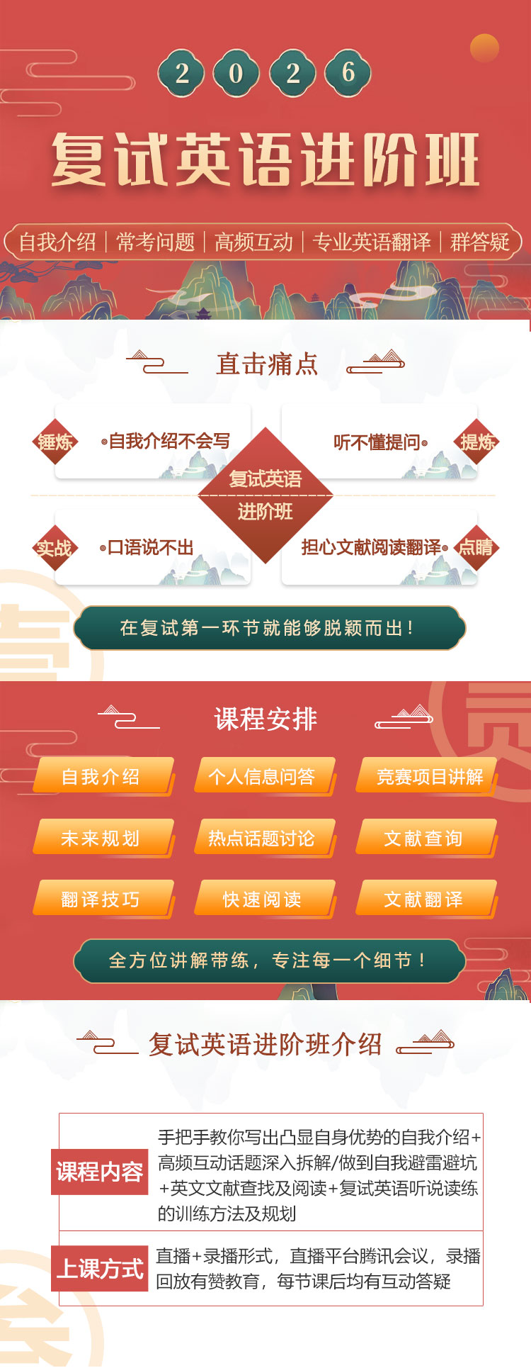 2026年复试英语进阶班 英文自我介绍 面试口语通关 复试面试话题 文献翻译辅导