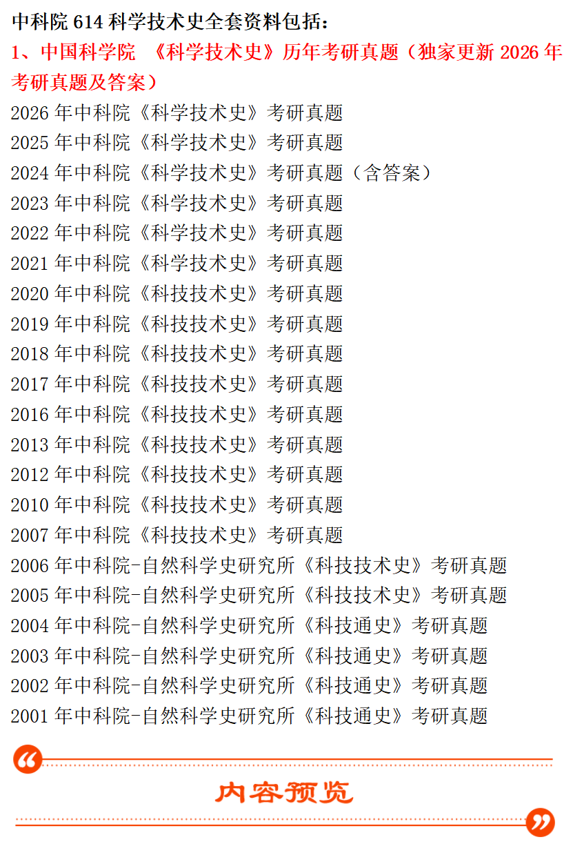 2027年中科院 国科大614科学技术史考研真题答案初试咨询辅导课程