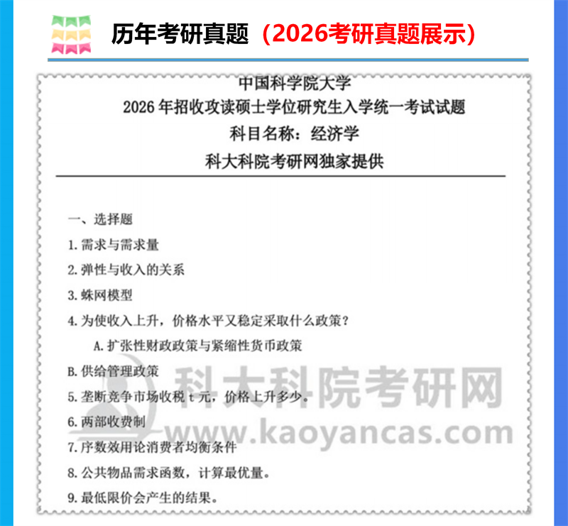 基础套餐包含:中科院2005-2009、2011-2013、2018-2026年经济学考研真题