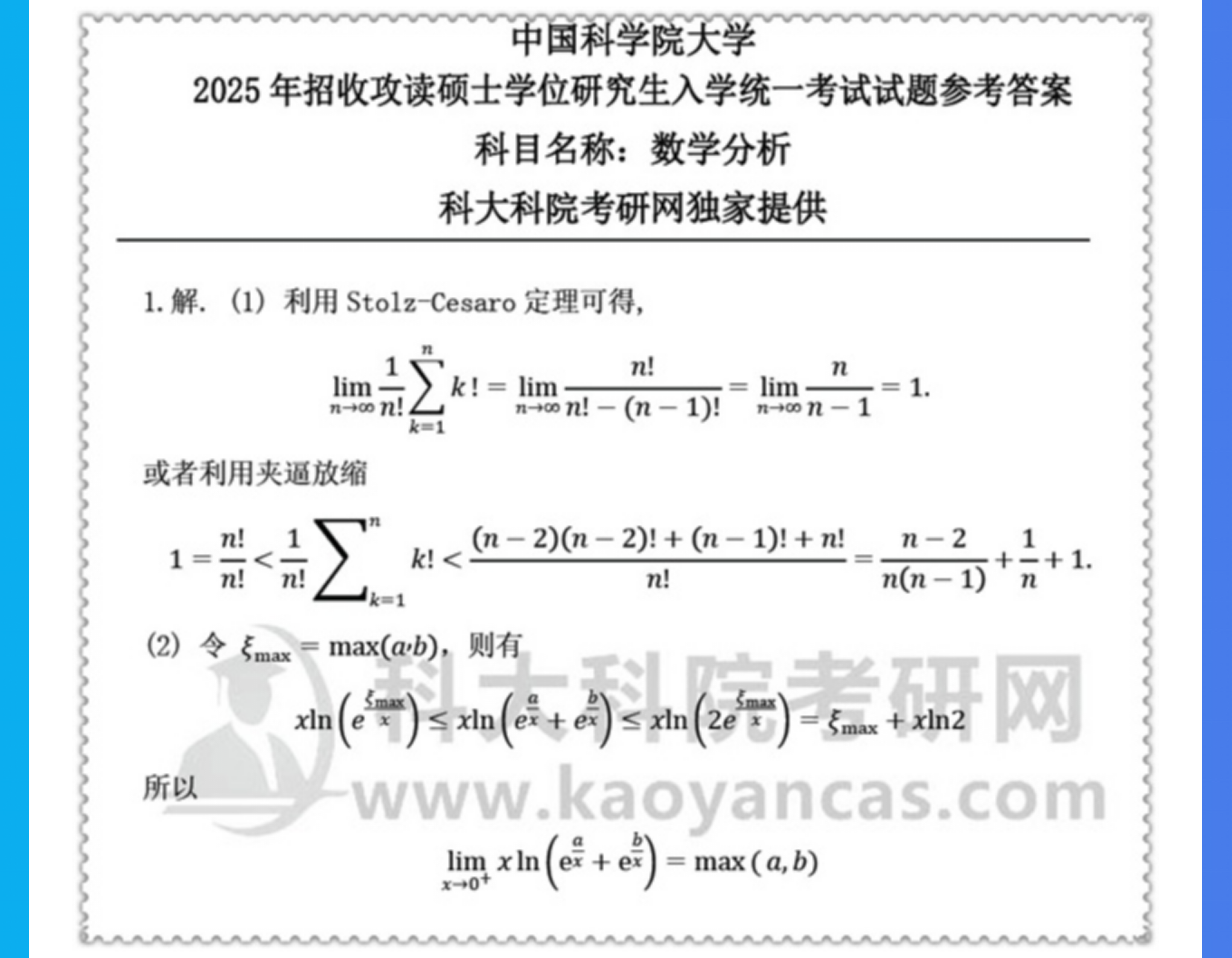2027年中科院 国科大616数学分析考研真题答案初试咨询辅导课程