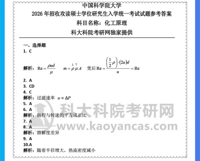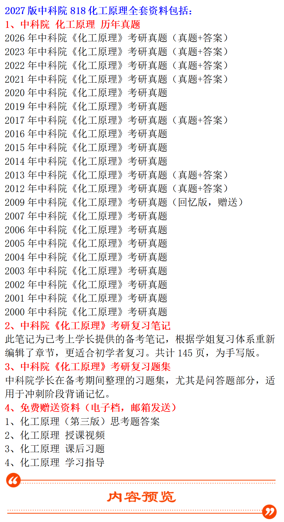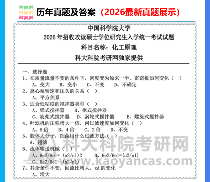 基础套餐包含:中科院2000-2007、2012-2017、2019-2023、2026年化工原理考研真题,其中2012、2013、2017、2021-2023、2026年有答案;考研复习题集;考研复习笔记