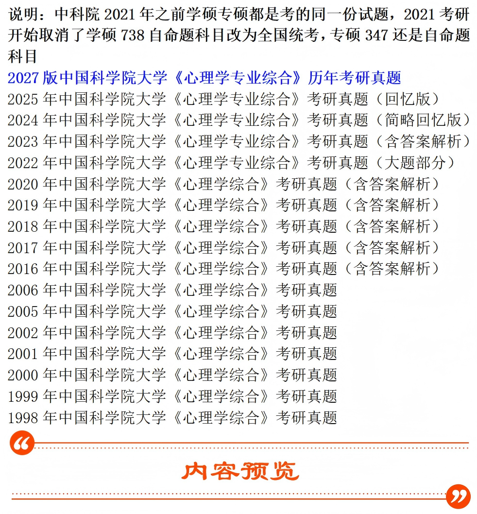 说明:中科院2021年之前学硕专硕都是考的同一份试题,2021考研开始取消了学硕738自命题科目改为全国统考,专硕347还是自命题科目