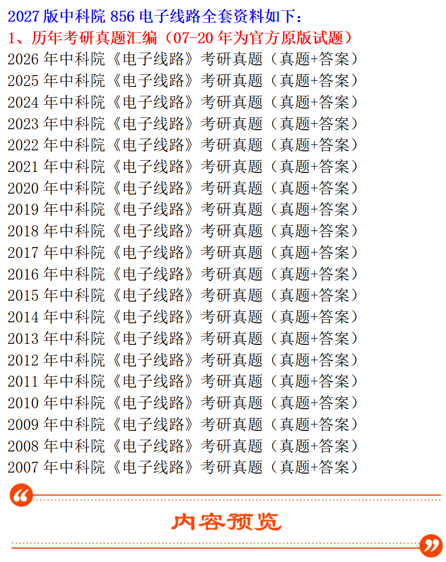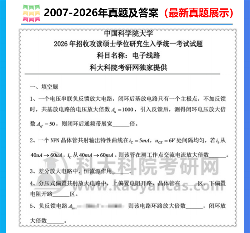 基础套餐包含:中科院2007-2026年电子线路考研真题及答案(2021-2026年试题为回忆版)