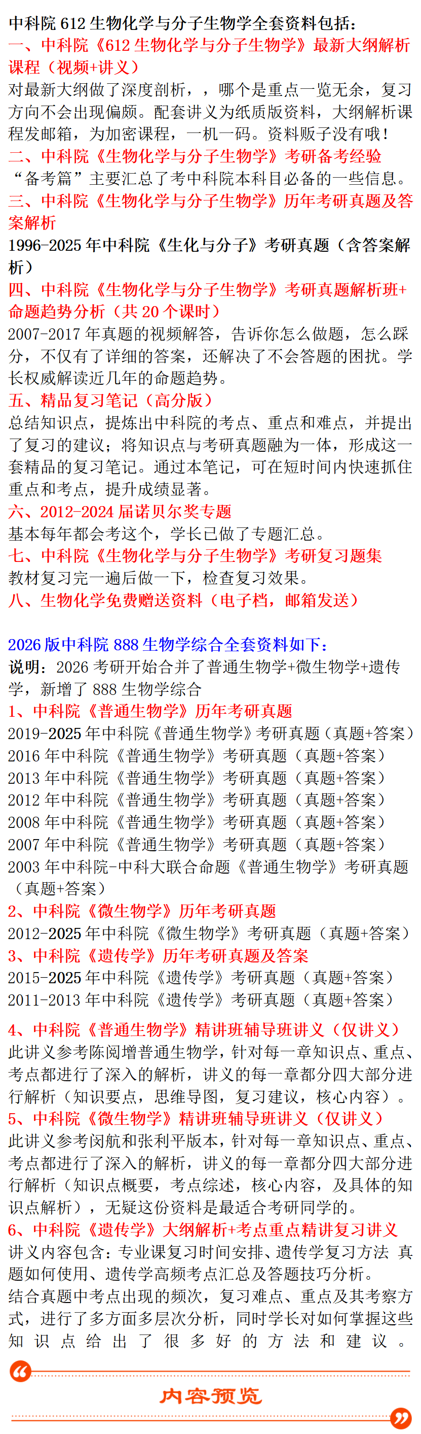 2026年 中科院 国科大 612生物化学与分子生物学+888生物学综合 考研真题答案初试咨询辅导课程