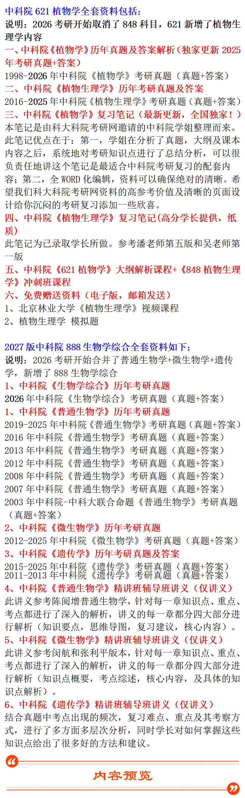 2026年 中科院 国科大 621植物学+888生物学综合 考研真题答案初试咨询辅导课程