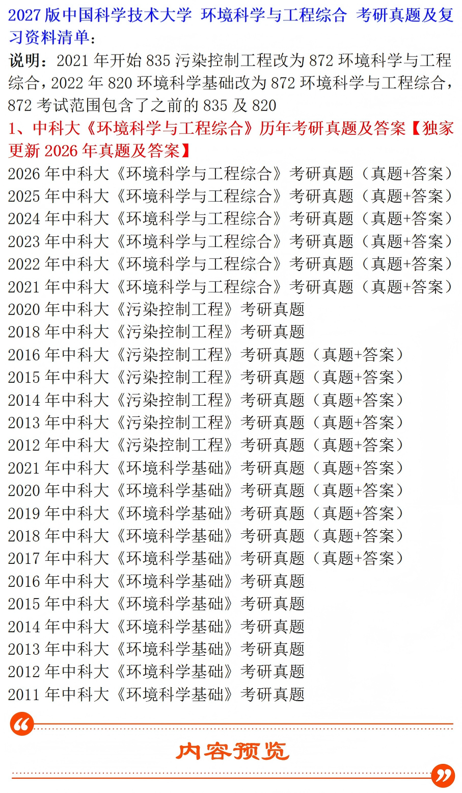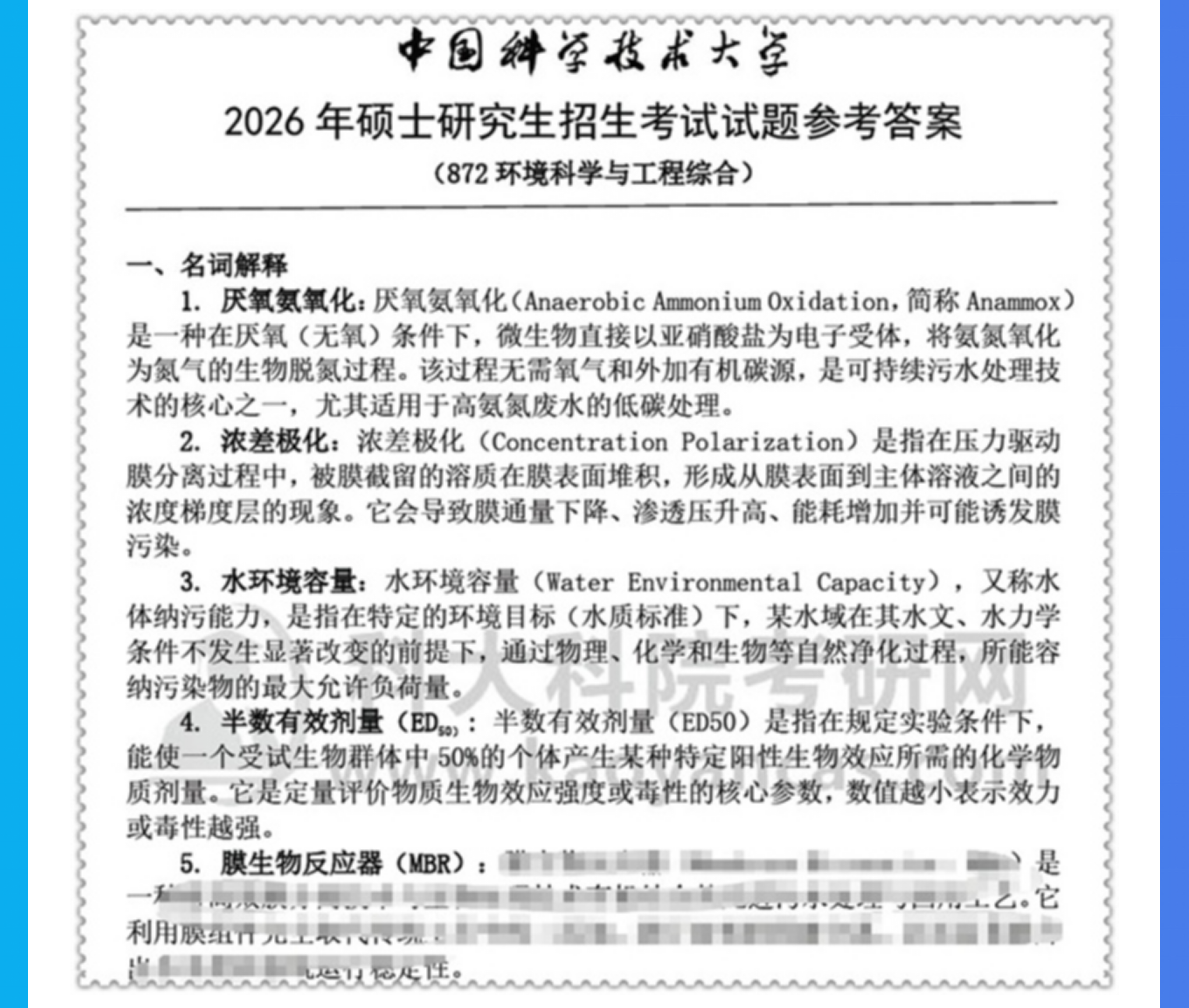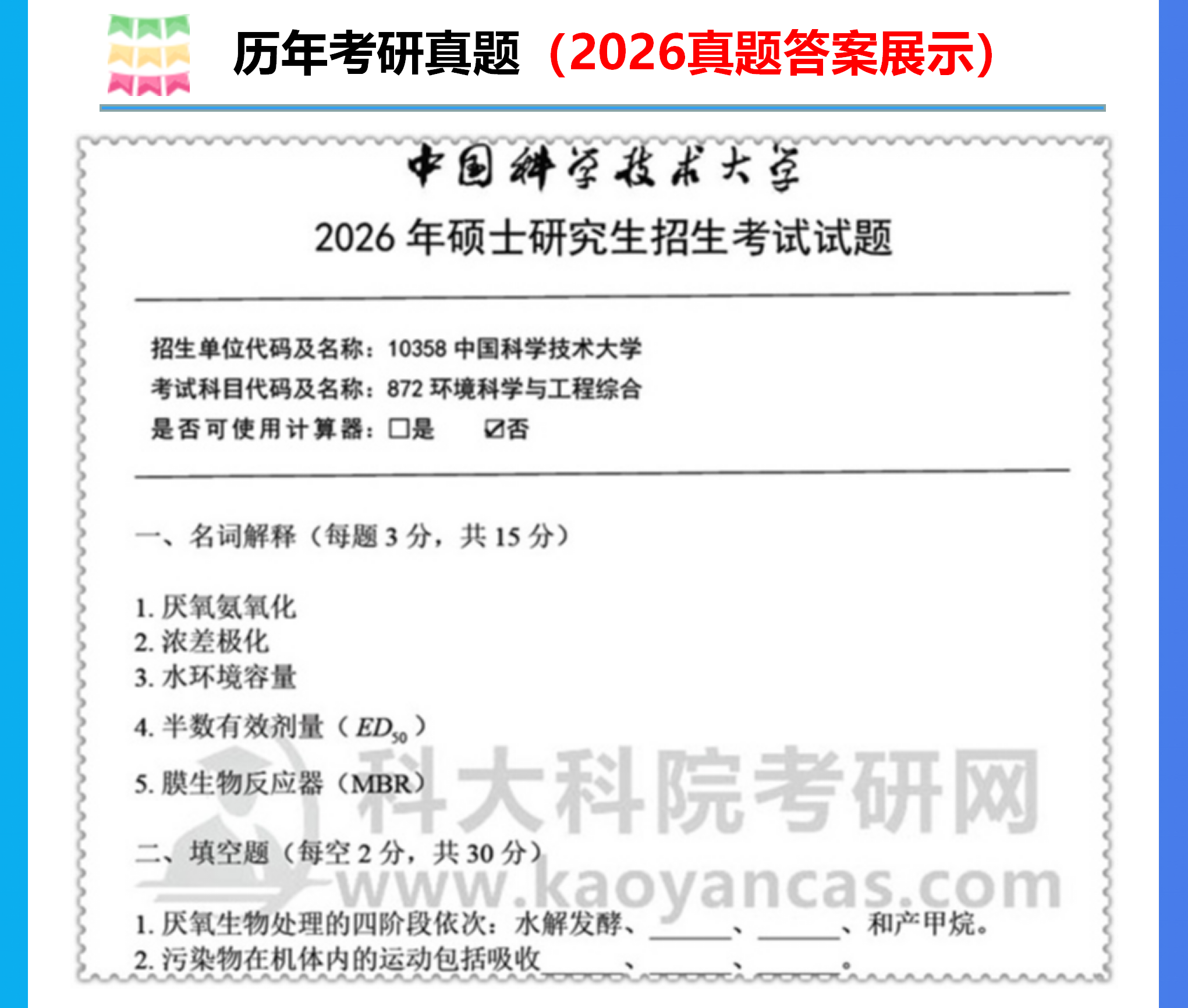 2027年中科大872环境科学与工程综合考研真题答案初试咨询辅导课程