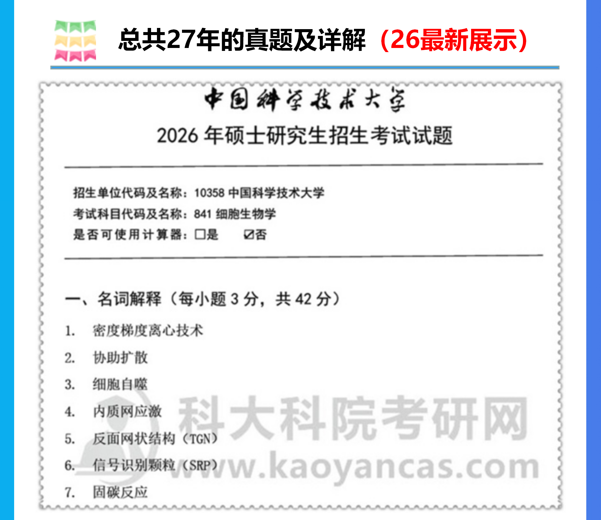 2027年中科大841细胞生物学考研真题答案真题答案初试咨询辅导课程