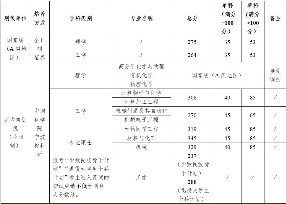 2026年中国科学院大学宁波材料技术与工程研究所考研复试分数线