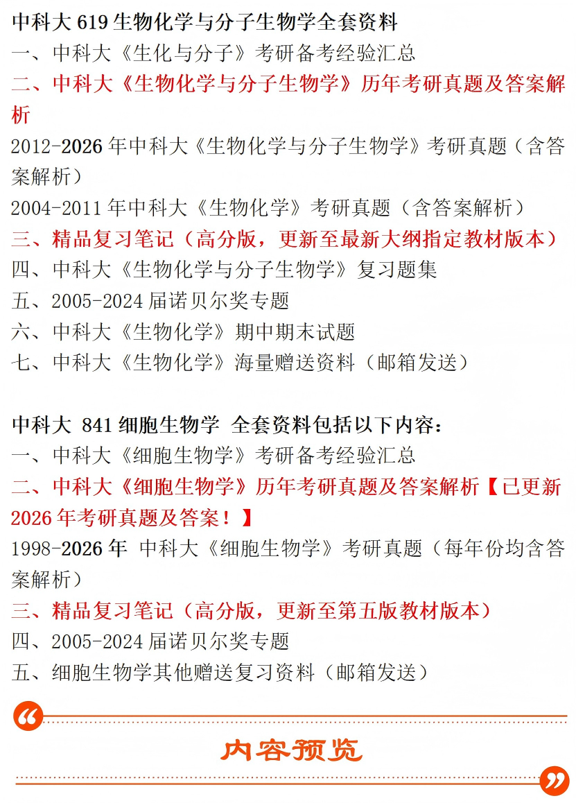 2027年 中科大 619生物化学与分子生物学+841细胞生物学 考研真题答案初试咨询辅导课程