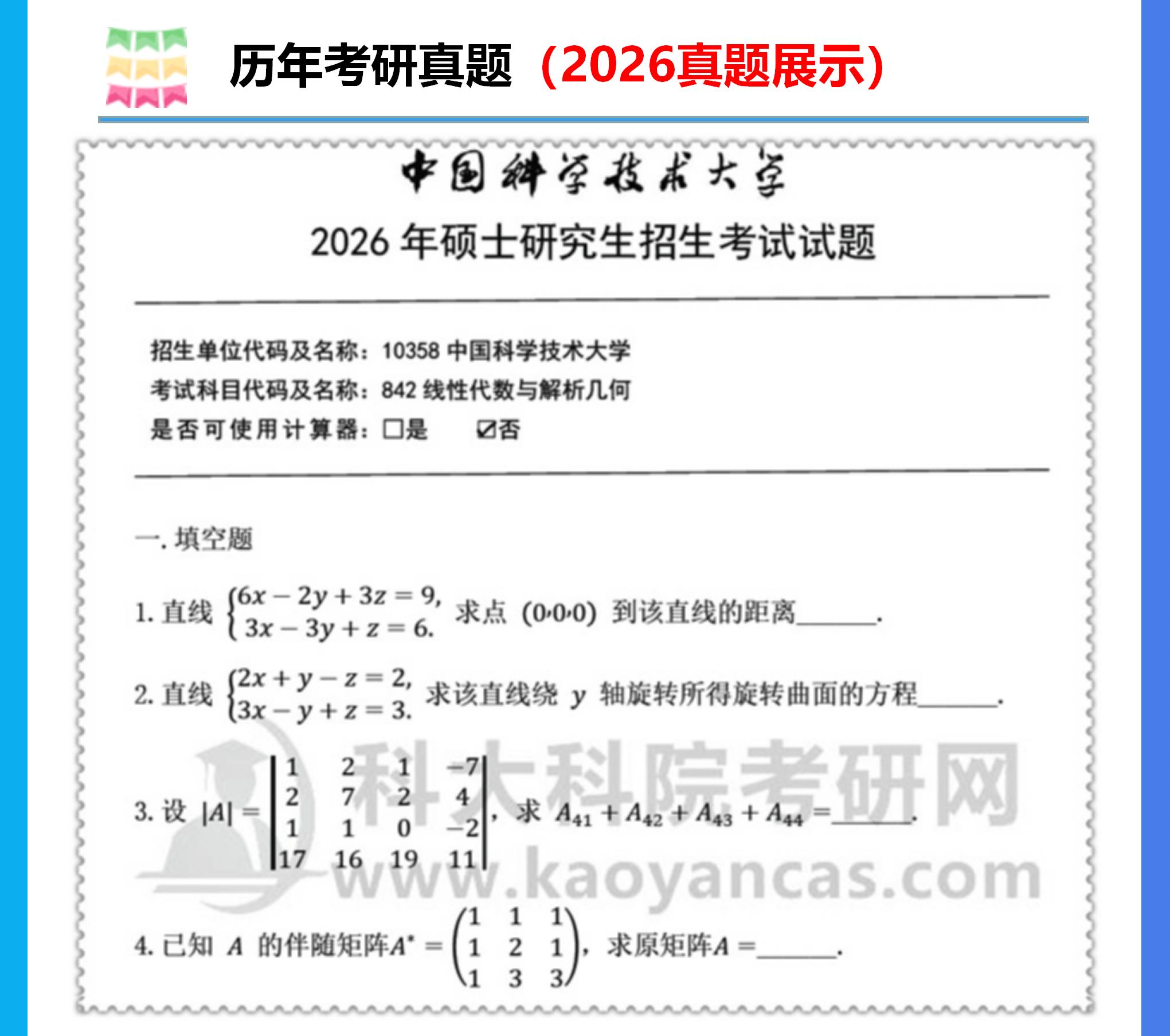 2027年 中科大 620数学分析+842线性代数与解析几何 考研真题答案初试 专业课